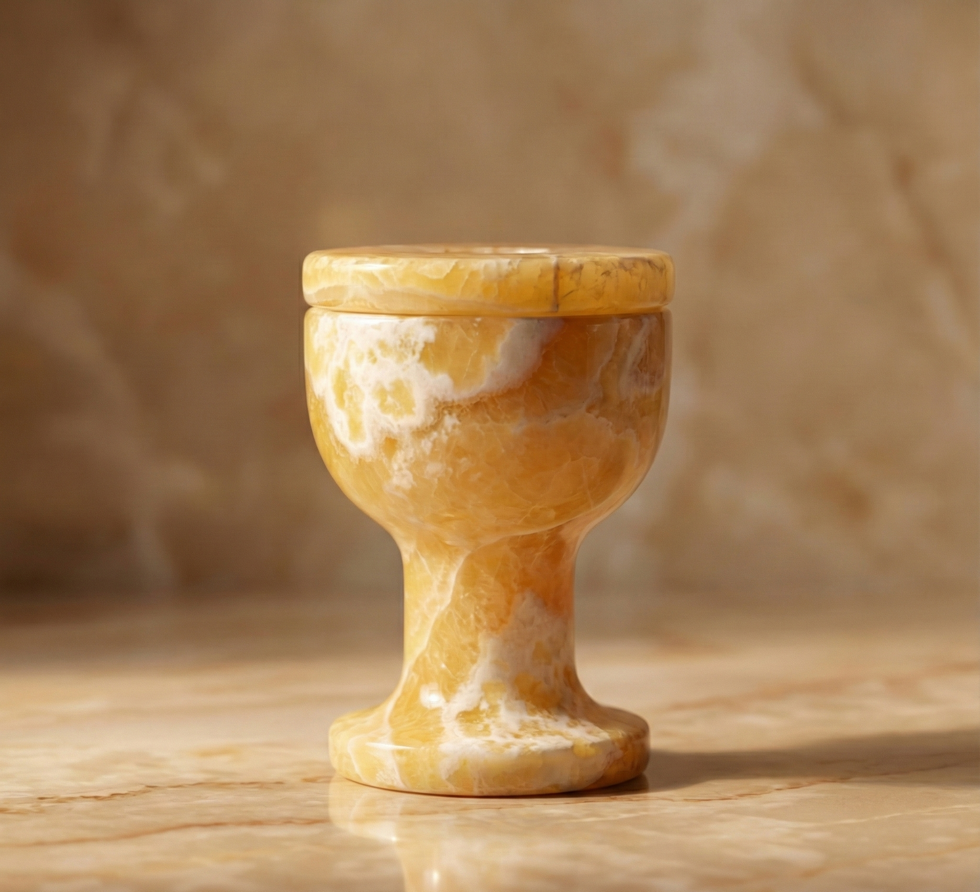 اسمها قِصّة لأنها فعلًا قطعة لها روح وحكاية، ومافيش قطعتين بيشبهوا بعض — كل مبخرة تُنحت يدويًا من رخام الأونكس الطبيعي اللي يتميّز بعروقه المتداخلة وألوانه الساحرة.